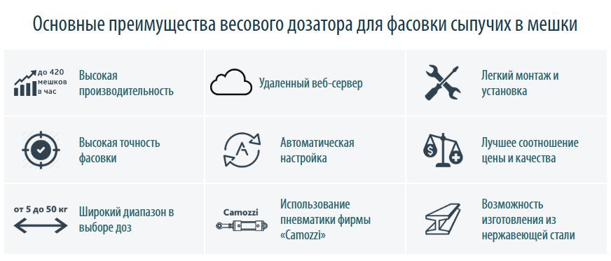 1. Увеличенная производительность при затаривании сыпучих материалов в мешки.